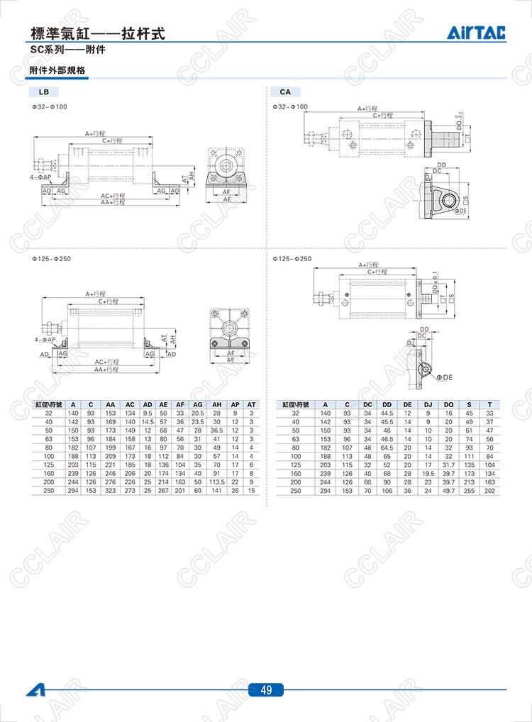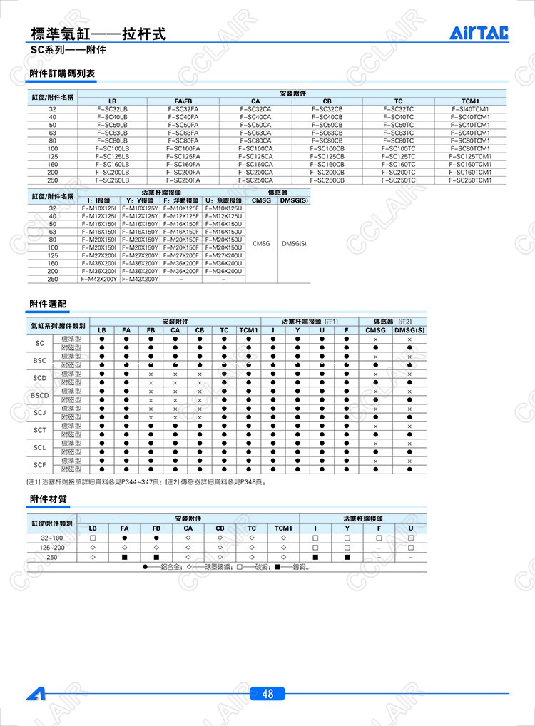 LB32,LB40,CA32,CA40,FA/FB32,CB32,CB40,TC32,TC40,TCM132,TCM140,AIRTAC亞德客標準氣缸附件