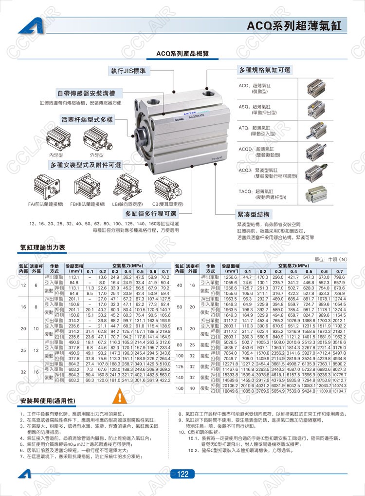 ACQ12*5,ACQ12*5-S,ASQ12*5,ASQ12*5-S,ATQ12*5,ACQD12*5,ACQJ12*5,AIRTAC亞德客超薄氣缸