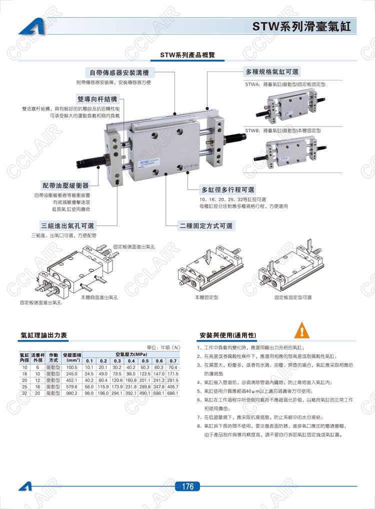 STW10*25-S,STW10*50-S,STW10*75-S,STW10*100-S,STW16*25-S,AIRTAC亞德客滑臺氣缸