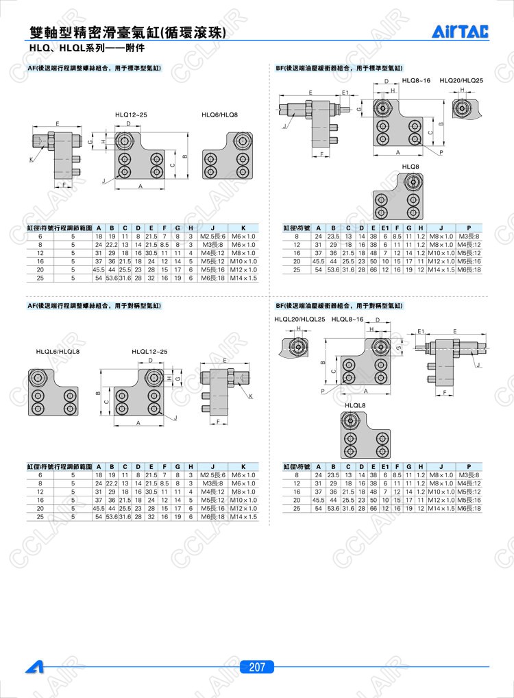 F-HLQ6AS,F-HLQ8AS,F-HLQ12AS,F-HLQ8BS,F-HLQ12BS,F-HLQ16BS,AIRTAC亞德客雙軸型精密滑臺氣缸附件
