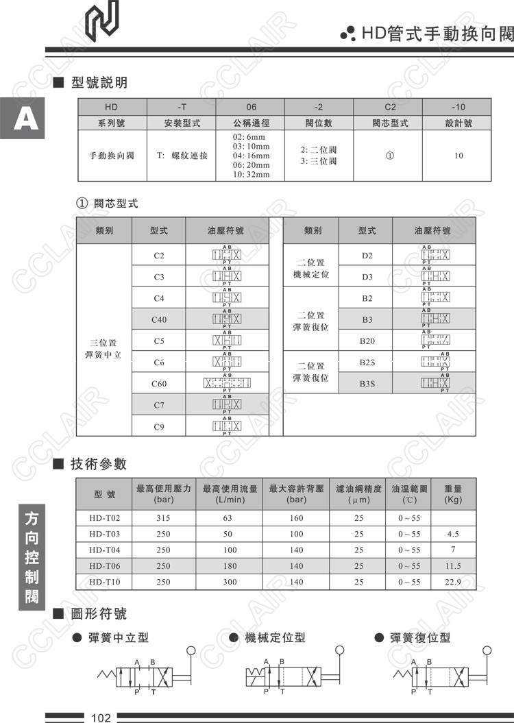 Northman臺(tái)灣北部精機(jī),管式手動(dòng)換向閥HD-T02-2C2-10,HD-T02-2D2-10,HD-T02-3C4-10,HD-T03-2C40-10,HD-T03-3B20-10,HD-T03-3C60-10,HD-T04-2B2S-10,HD-T06-3C7-10,HD-T10-2C2-10,HD-T10-2D3-10,HD-T10-3C40-10,HD-T10-3B3S-10