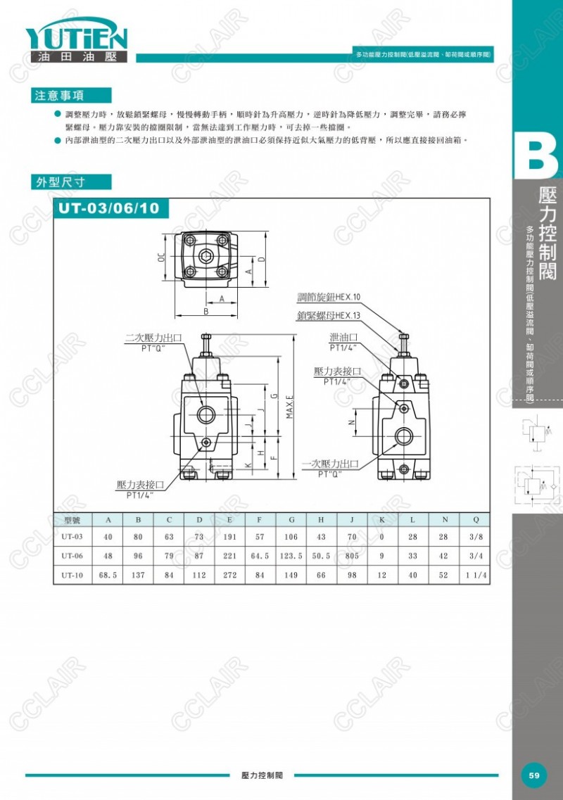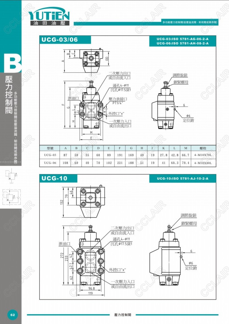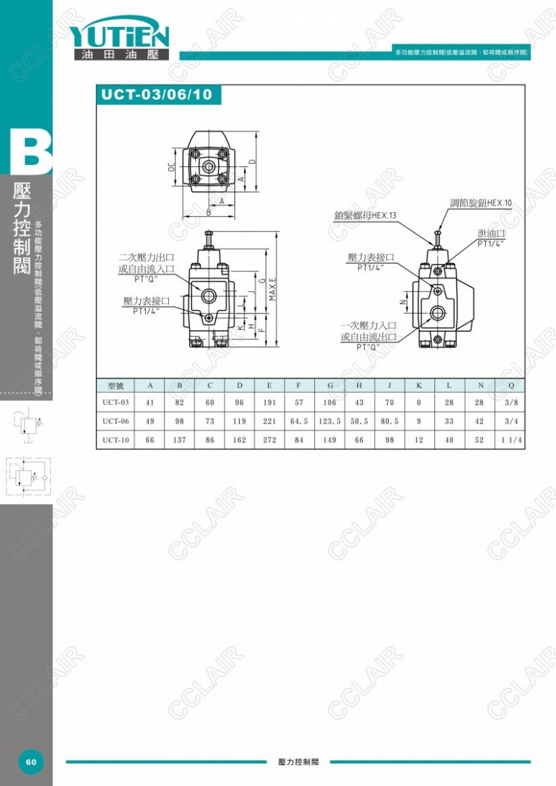 YUTIEN油田多功能壓力控制閥UT-03,UT-06,UT-10,UCT-03,UCT-06,UCT-10,UCG-03,UCG-06,UCG-10,UG-03,UG-06,UG-10