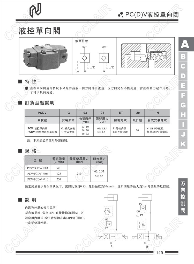 Northman北部精機,液控單向閥PCV-G03-05-E-20-N,PCV-G03-50-ET-20,PCV-G06-50-ET-20-N,PCV-G10-50-E-20,PCV-T03-50-E-20-N,PCV-T10-05-E-20,PCDV-G03-05-E-20-N,PCDV-G03-50-ET-20,PCDV-G10-50-E-20-N,PCDV-T06-05-E-20,PCDV-T10-05-E-20-N