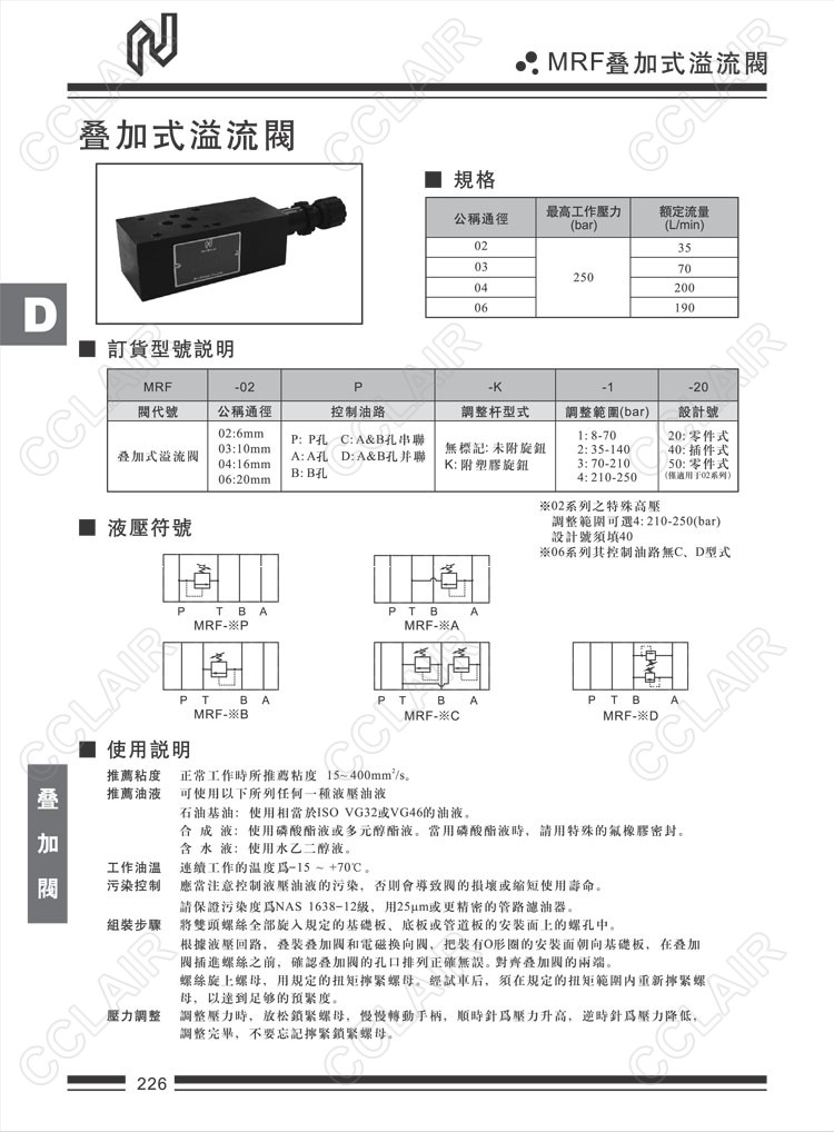 Northman臺灣北部精機,疊加式溢流閥MRF-02-P-1-20,MRF-02-C-4-20,MRF-02-C-4-40,MRF-02-B-K-3-20,MRF-02-B-K-3-40,MRF-03-C-K-2-20,MRF-03-C-K-2-40,MRF-04-C-K-4-20,MRF-04-C-K-4-40,MRF-06-B-K-3-20,MRF-06-B-K-3-40