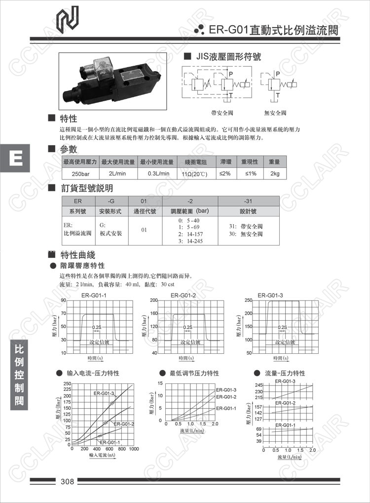 Northman臺灣北部精機,直動式比例溢流閥ER-G01-0-31,ER-G01-0-30,ER-G01-1-31,ER-G01-1-30,ER-G01-2-31,ER-G01-2-30,ER-G01-3-31,ER-G01-3-30