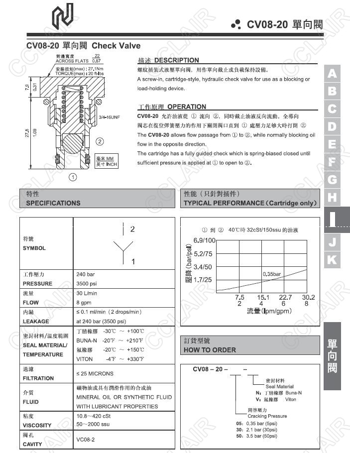 Northman臺(tái)灣北部精機(jī),單向閥CV08-20-05-N,CV08-20-05-V,CV08-20-30-N,CV08-20-30-V,CV08-20-50-N,CV08-20-50-V