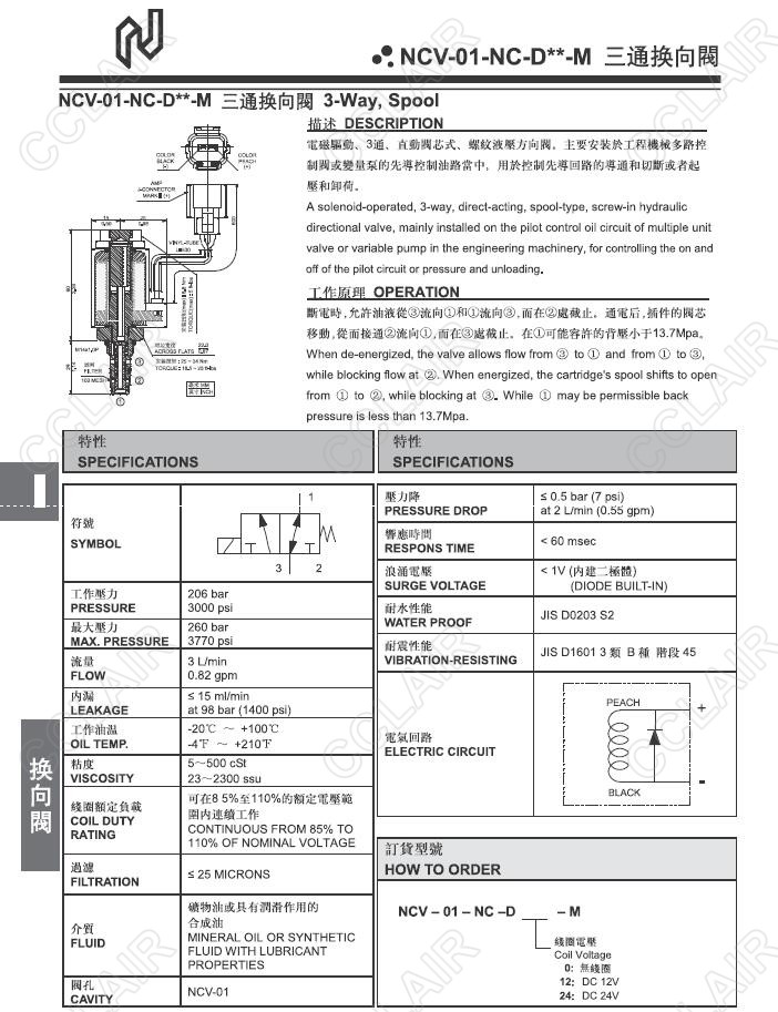 Northman北部精機(jī),三通換向閥NCV-01-NC-D0-S,NCV-01-NC-D12-S,NCV-01-NC-D24-S