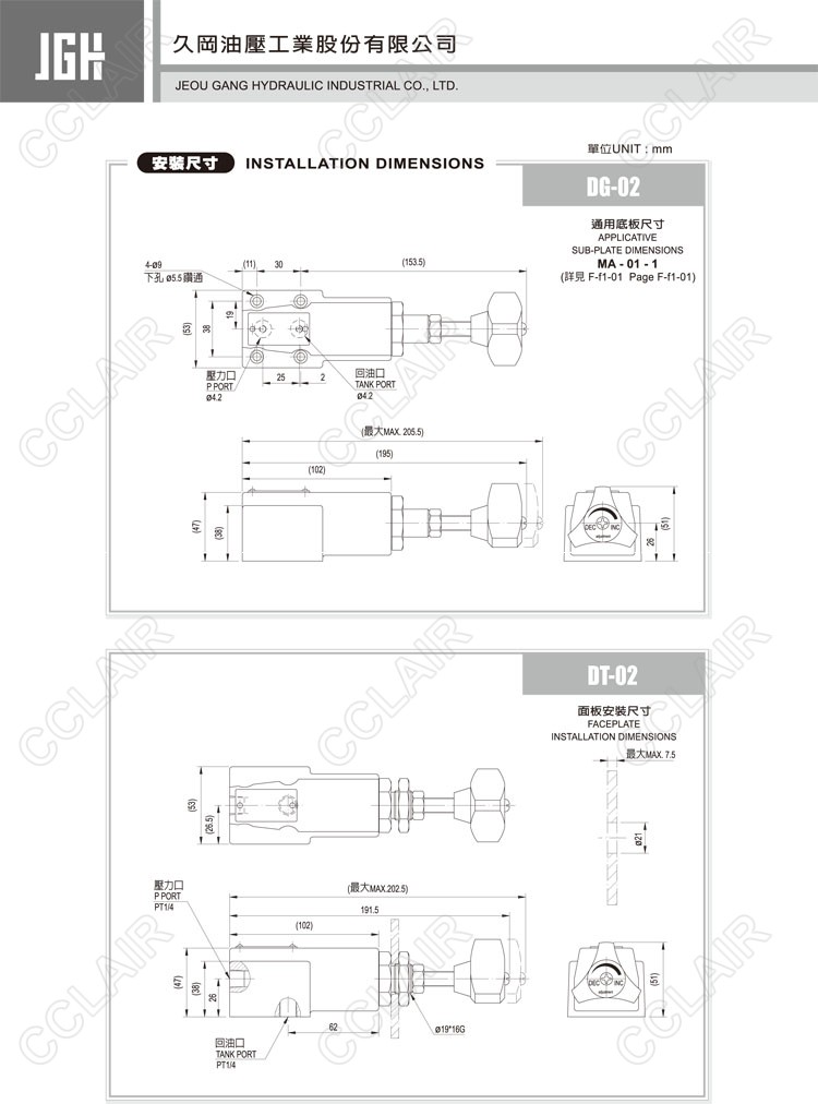 JeouGang臺灣久岡,直動式溢流閥DG-02-1-30,DG-02-2-30,DG-02-3-30,DT-02-1-30,DT-02-2-30,DT-02-3-30