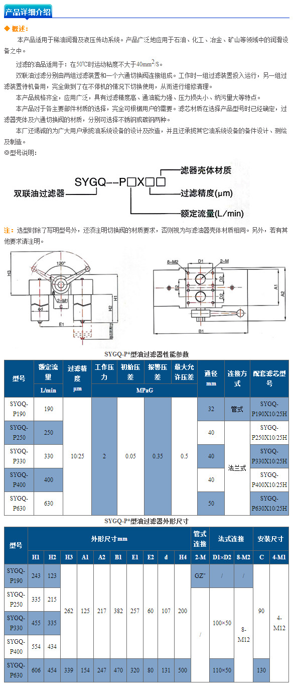 SYGQ-P190x10,SYGQ-P190x16,SYGQ-P190x20,SYGQ-P190x25,SYGQ-P250x10,SYGQ-P250x16,SYGQ-P250x20,SYGQ-P250x25,SYGQ-P330x10,SYGQ-P330x16,SYGQ-P330x20,SYGQ-P330x25,SYGQ-P400x10,SYGQ-P400x16,SYGQ-P400x20,SYGQ-P400x25,SYGQ-P630x10,SYGQ-P630x16,SYGQ-P630x20,SYGQ-P630x25,SYGQ-P型雙聯(lián)油過濾器