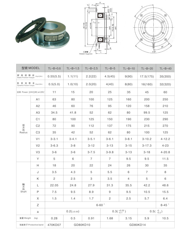 TL-B-0.6,TL-B-1.5,TL-B-2.5,TL-B-5,TL-B-10,TL-B-20,TL-B-40,DC24V電磁制動(dòng)器