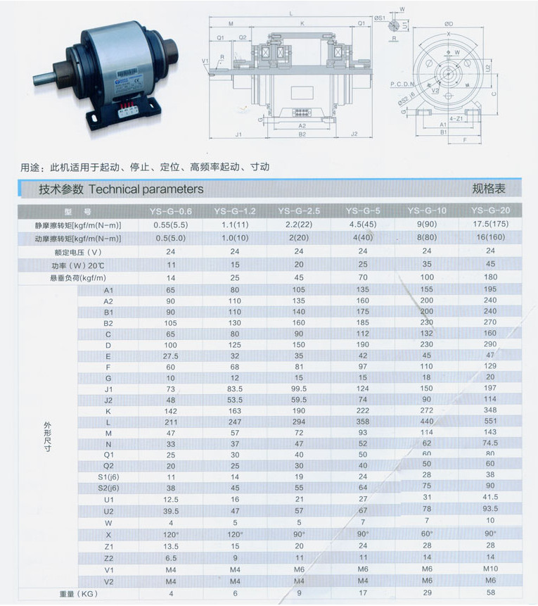 YS-G-0.6,YS-G-1.2,YS-G-2.5,YS-G-5,YS-G-10,YS-G-20,外露式電磁雙離合內(nèi)單電磁制動(dòng)器組合