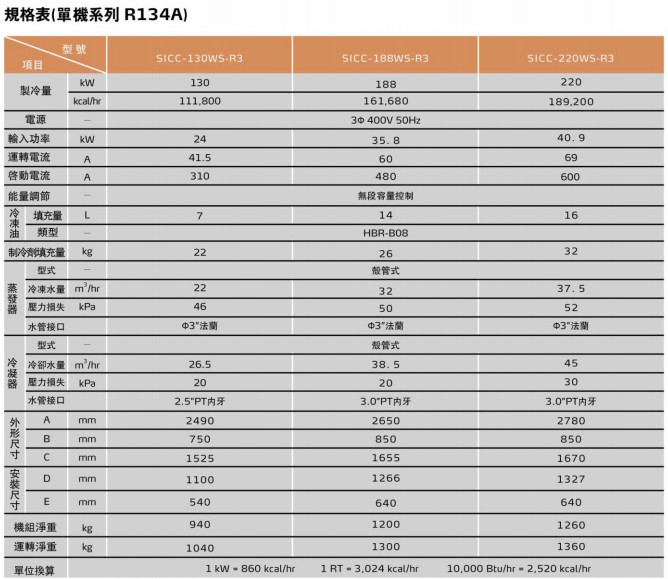 SICC-130WS-R3,SICC-188WS-R3,SICC-220WS-R3,SICC-260WD-R3,SICC-380WD-R3,SICC-450WD-R3環(huán)保冷媒水冷式中央冷水主機(jī)
