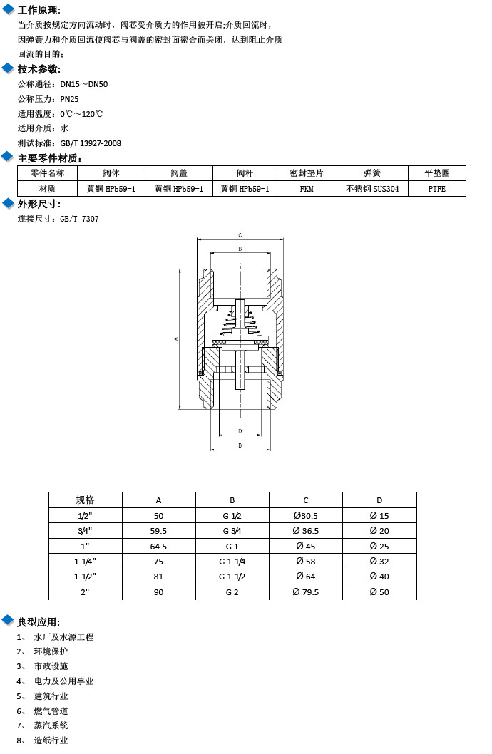 W-WB451B-DN15,W-WB451B-20,W-WB451B-25,W-WB451B-32,W-WB451B-40,W-WB451B-50,黃銅止回閥