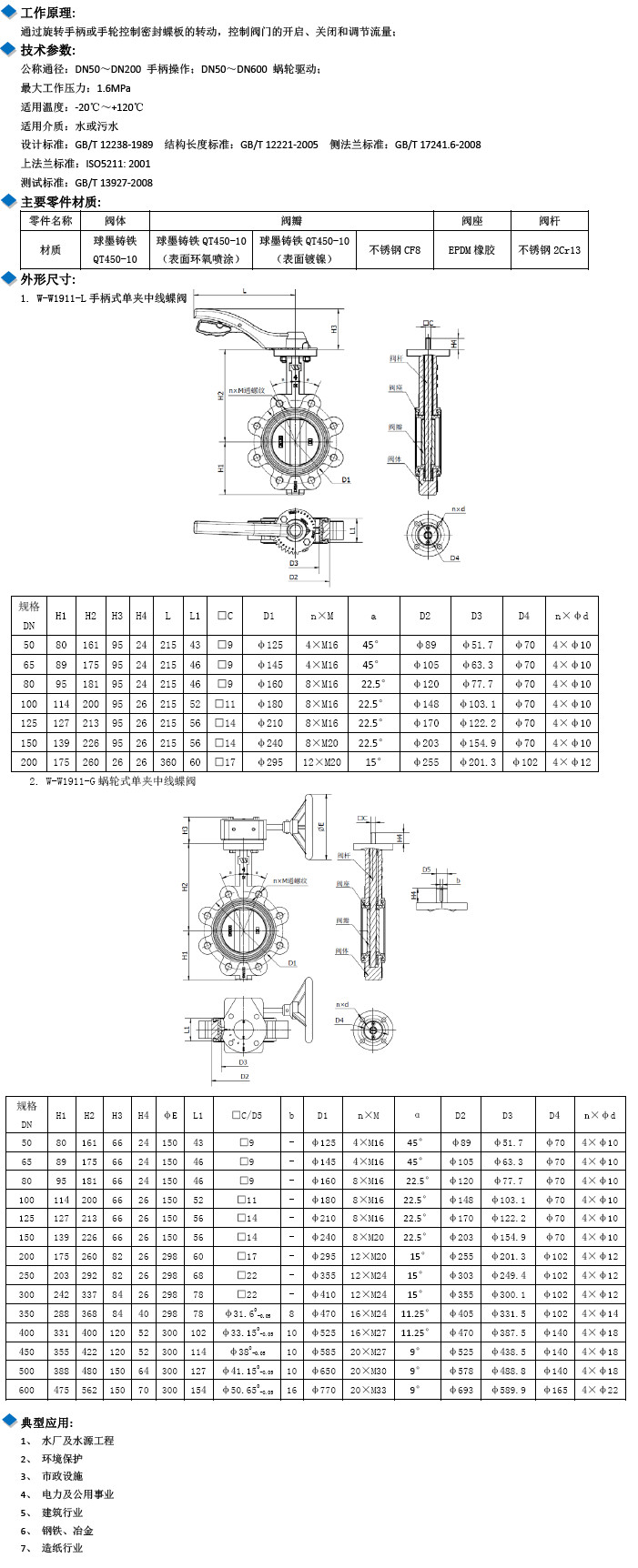 W-W1911-L-DN50,W-W1911-L-DN65,W-W1911-G-DN50,W-W1911-G-DN65,單夾中線蝶閥