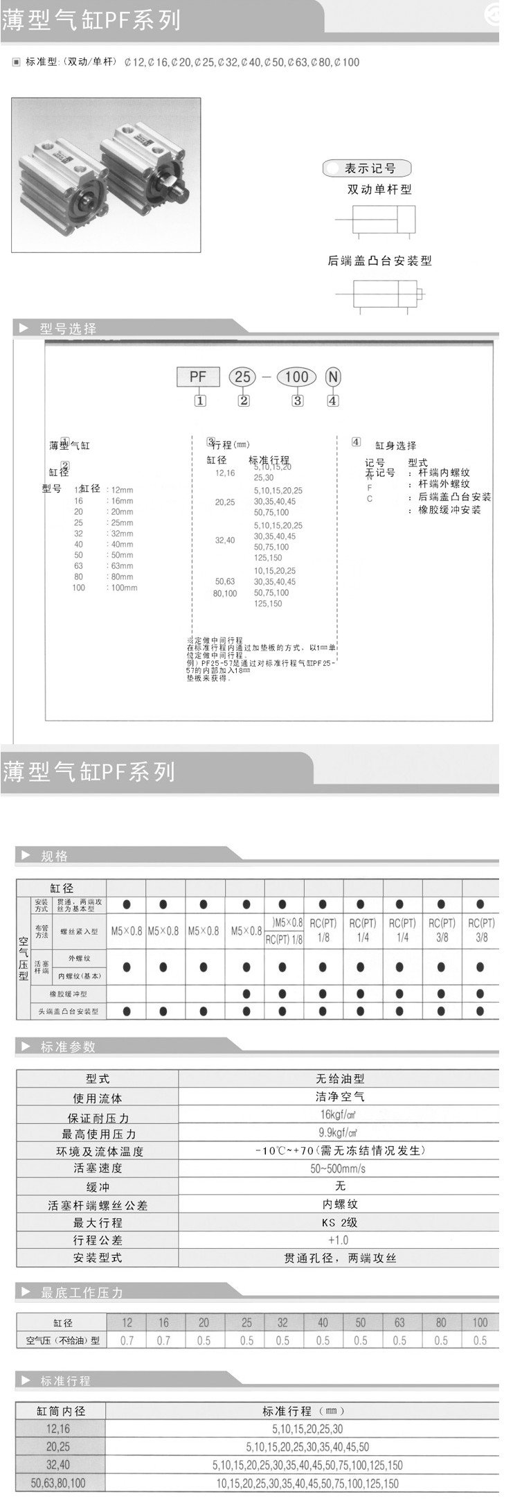 PF12-5,PF12-5N,PF12-5F,PF12-5C,PDF12-10,PDF12-10N,PDF12-10F,PDF12-10C,薄型氣缸PF/PDF系列
