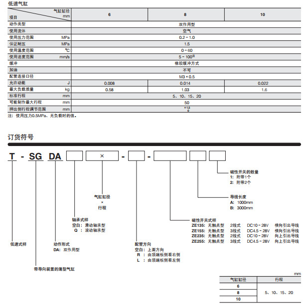 T-SGDA6*5,T-SGDA6*10,T-SGDA6*15,T-SGDA6*20,T-SGDA8*5,帶導(dǎo)向裝置的薄型氣缸--低速氣缸