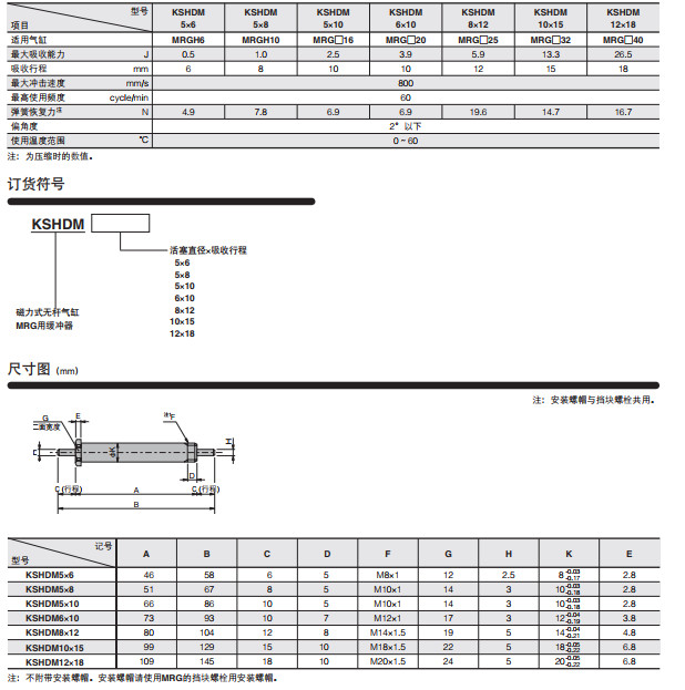 KSHDM5*6,KSHDM5*8,KSHDM5*10,KSHDM6*10,KSHDM8*12,KSHDM10*15,KSHDM12*18,專用緩沖器
