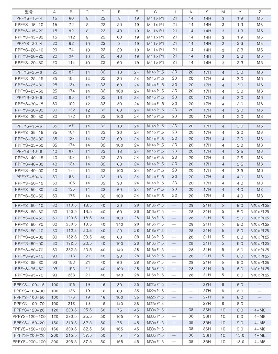 型號: PPFYS-2-2.5,PPFYS-2-5,PPFYS-3.5-2.5,PPFYS-3.5-5,PPFYS-5-3,PPFYS-5-10,PPFYS-5-15,PPFYS-5-25,PPFYS-6-3