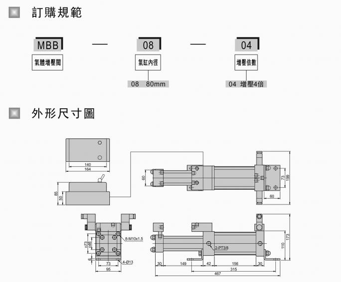 電磁式氣體增壓缸MBB-0804,MBB-1004