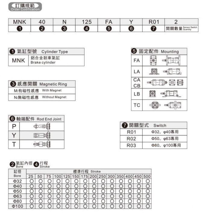 鋁合金剎車氣缸 MNK32M-25FA,MNK32M-25LA,MNK32M-25CA,MNK32M-25CB,MNK32M-25LB