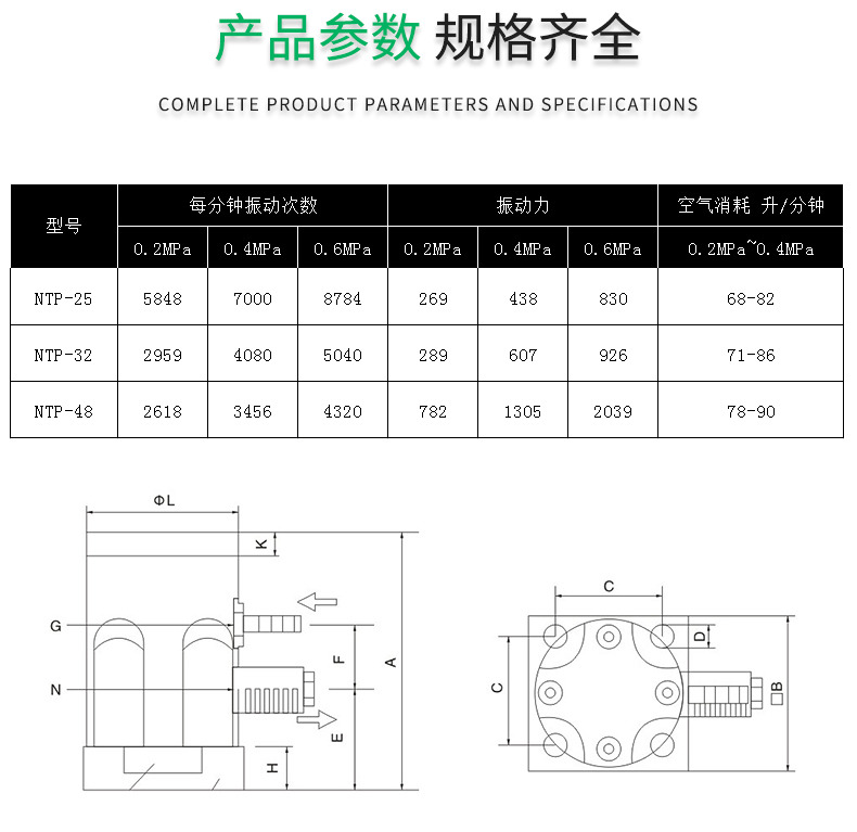 氣缸式活塞往復(fù)式振動器NTP-25,NTP-32,NTP-48直線沖擊下料