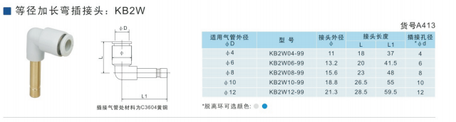SMC型等徑加長彎插接頭KB2W04-99,KB2W06-99,KB2W08-99,KB2W10-99,KB2W12-99,