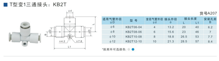 SMC型T型變1三通接頭KB2T06-04,KB2T08-06,KB2T10-08,KB2T12-10,