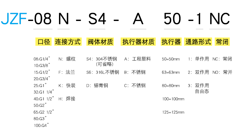 型號(hào): JZF-15N-A50-1NC,JZF-20N-A50-1NC,JZF-25N-A50-1NC,JZF-25N-A63-1NC,JZF-32N-A63-1NC,JZF-40N-A63-1NC,JZF-