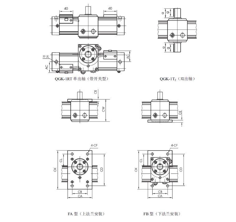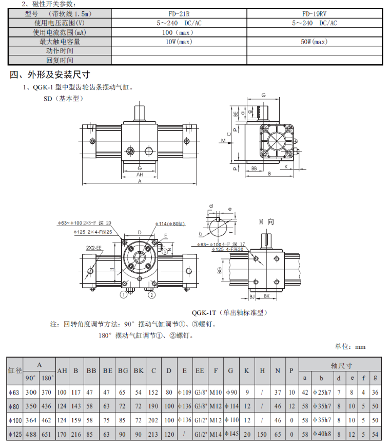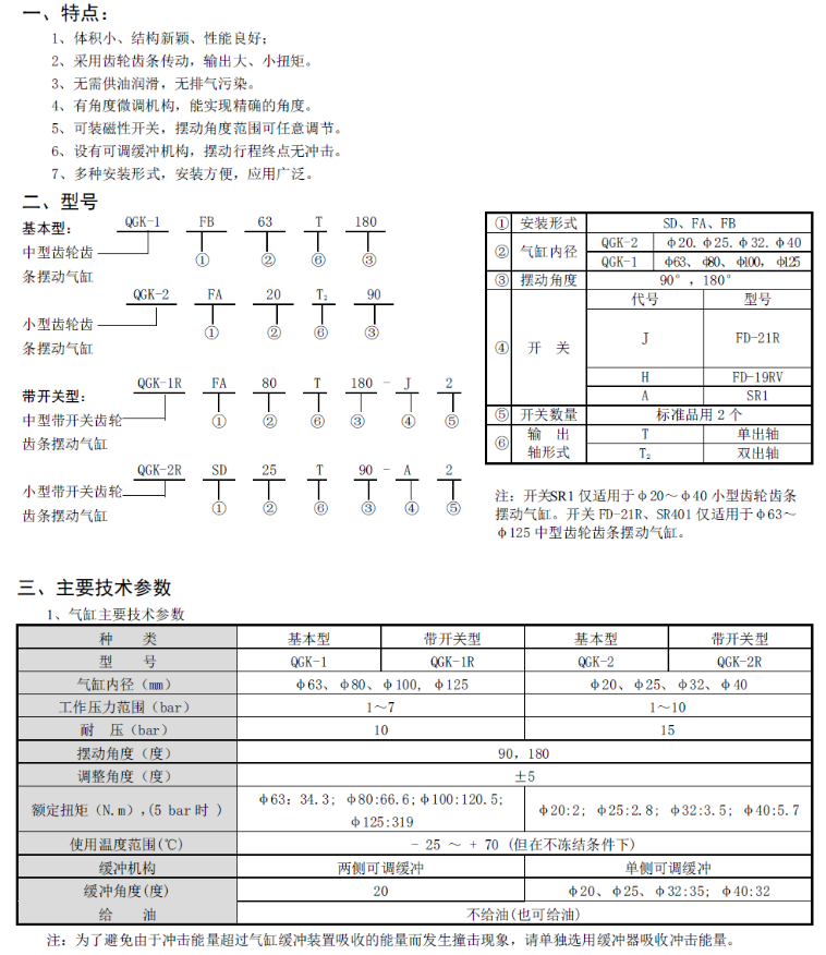QGK無給油潤滑齒輪齒條擺動氣缸