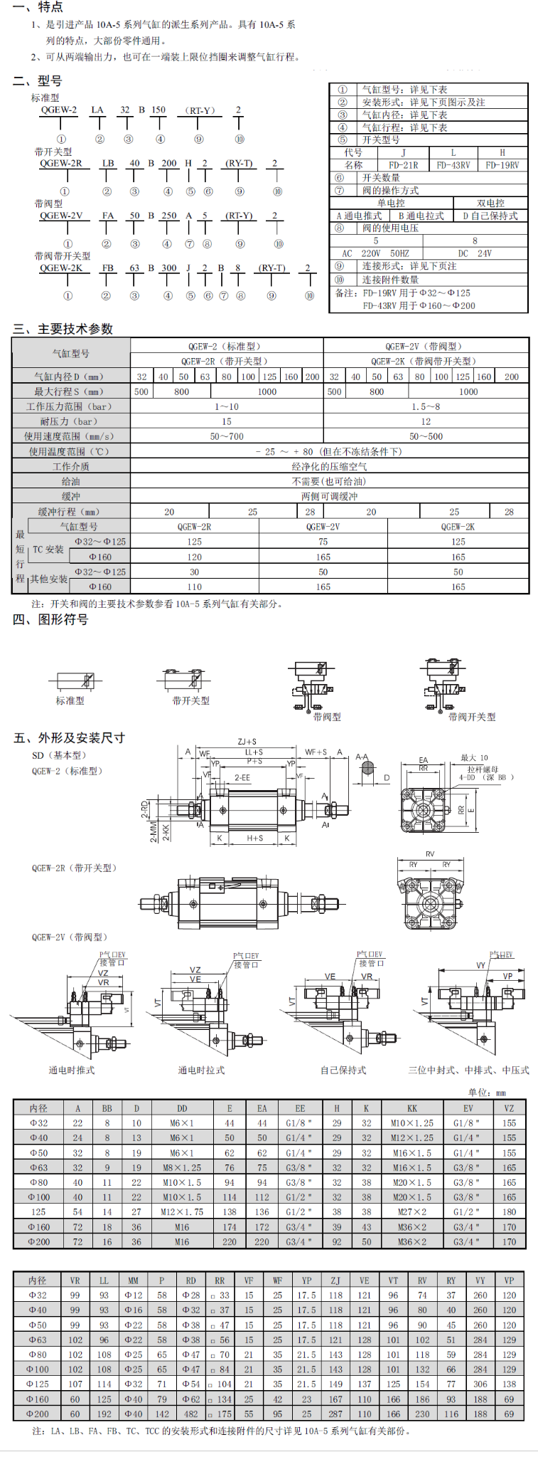 QGEW-2無給油潤滑雙活塞桿氣缸