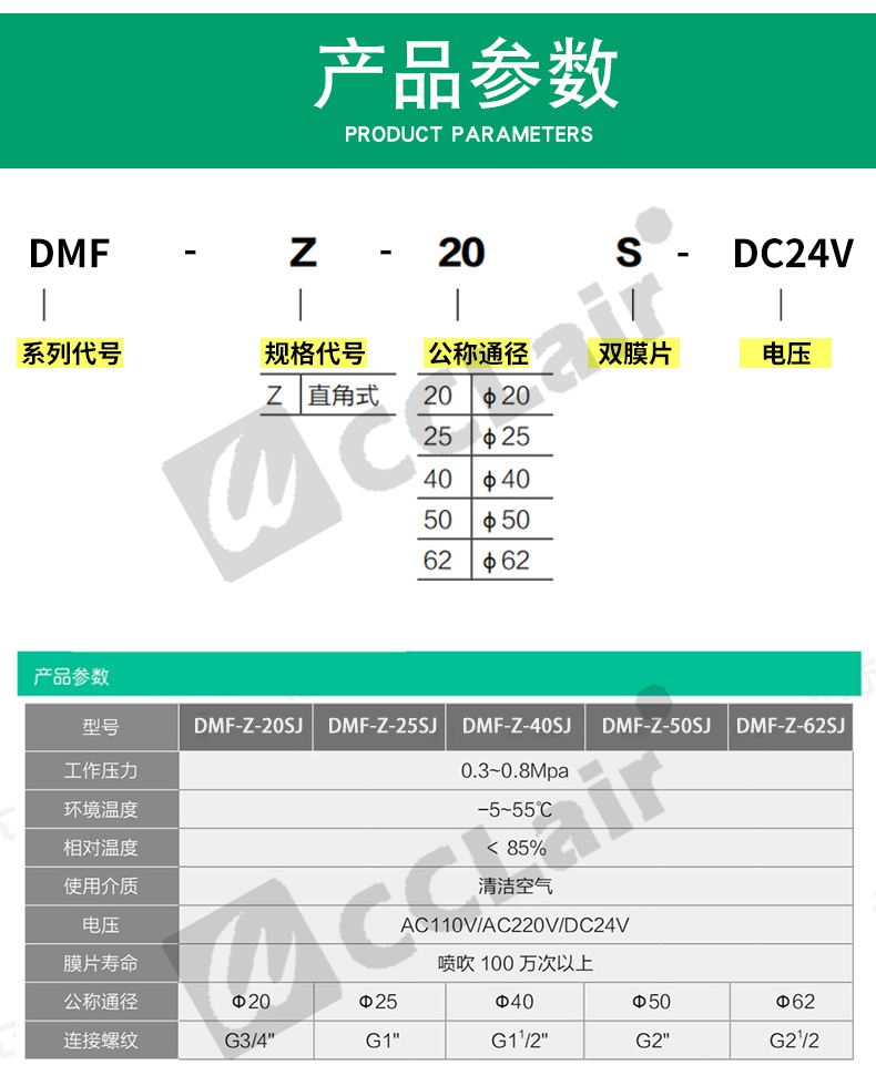 DMF-Z-25DD,DMF-H-105,DMF-Z-45DD,DMF-H-135外螺母/活塞脈沖閥