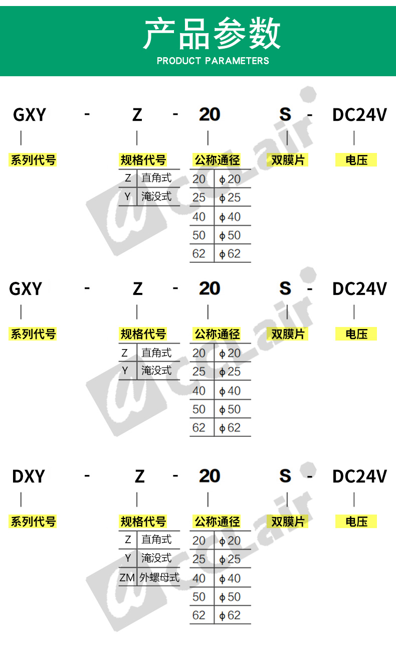 GXY-Z-20A,GXY-Y-25,GXY-Z-15,GXY-Z-20,GXY-Y-50S,GXY-Z-35,GXY-Y-76S,GXY-Z-40S,GXY-Y-89S,GXY-Z-25,GXY-Y-62S,長管式脈沖閥