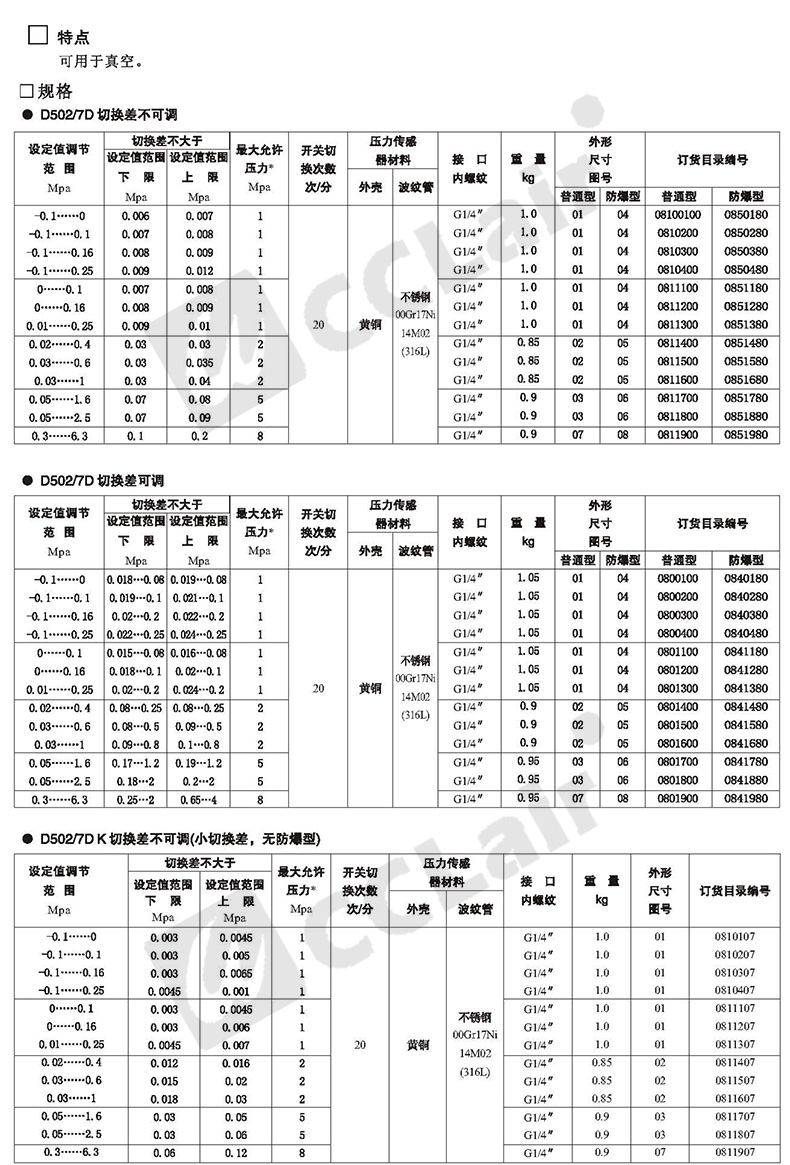 0810100,0811500,0810200,0811600,壓力控制器 普通 D502/7D切換差不可調(diào) 0810300,0811700,0810400,0811800, 0811100,0811200,0811300,0811400,