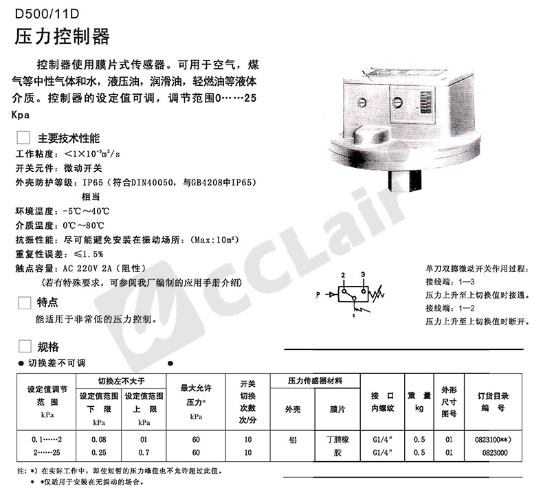 0819100,0819500,0819200,0819600,壓差開關(guān)普通 D520/7DD切換差不可調(diào) 0819300,0819700,0819400,