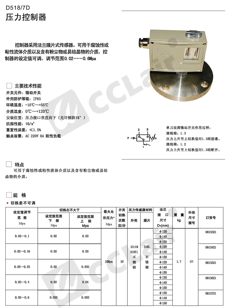 0883100,0883300,0883200,0883400,壓力開關(guān)D505/18D系列 法蘭