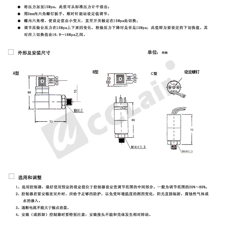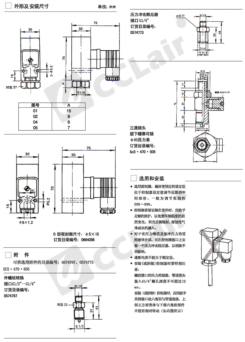 0880100,0880300,0880200,0880400,壓力控制器D500/18D系列 螺紋G1/4