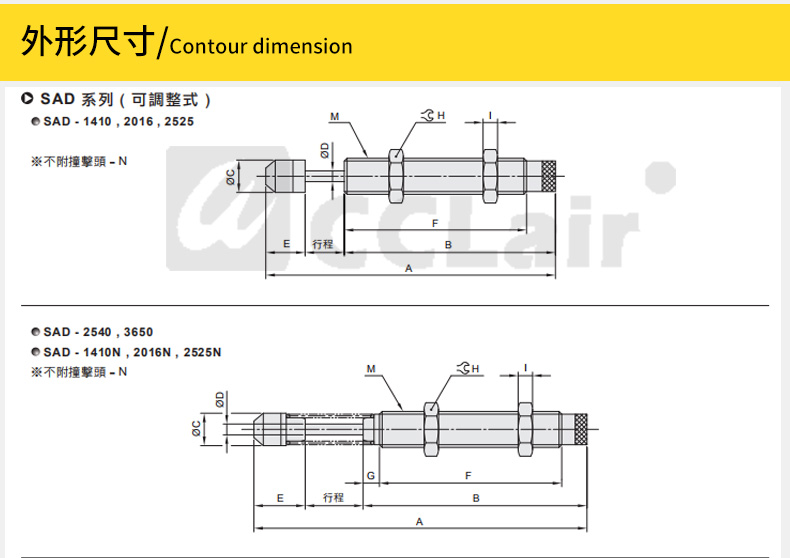 SAD-1410N,SAD-1410C,SAD-2016N,SAD-2016C,SAD-2525N,SAD-2525C,SAD-2540C,緩沖器,臺灣氣立可CHELIC型 SAC不可調(diào)式油壓
