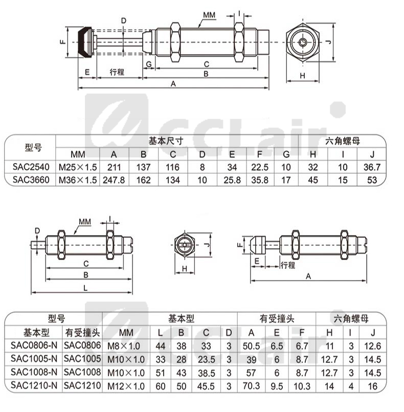 SAD-1410N,SAD-1410C,SAD-2016N,SAD-2016C,SAD-2525N,SAD-2525C,SAD-2540C,緩沖器,臺灣氣立可CHELIC型 SAC不可調(diào)式油壓 SAD-3625C,SAD-3650C,SAD-4225C,SAD-4250C,SAD-4275C,