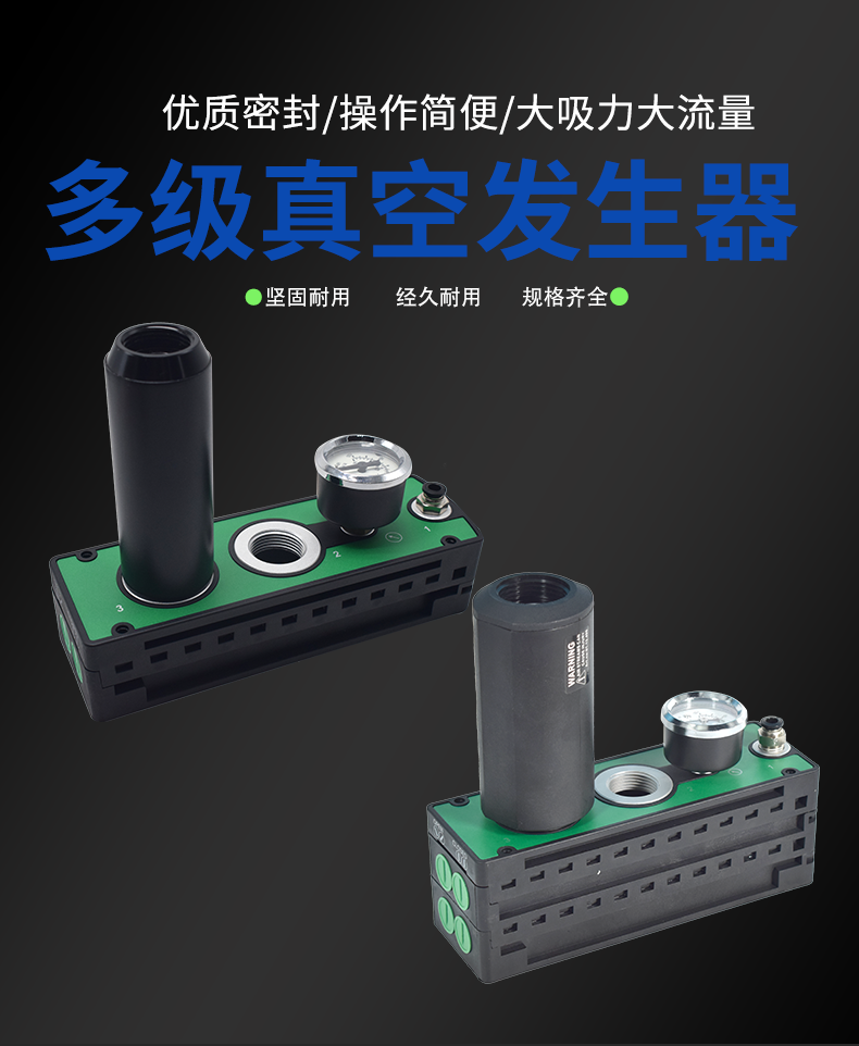 多級(jí)高真空型發(fā)生器的工作原理是利用噴管高速噴射壓縮空氣,?在噴管出口形成射流,?產(chǎn)生卷吸流動(dòng)。?這種工作原理使得噴管出口周圍的空氣不斷地被抽吸走,?從而使吸附腔內(nèi)的壓力降至大氣壓以下,?形成一定真空度。