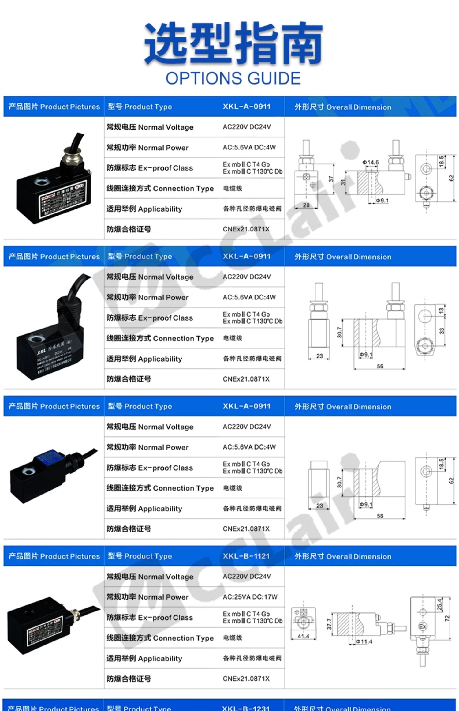 XKL-A-0911,XKL-B-1121,XKL-B-1231,XKL-C-1341,XKL-C-1451,XKL-E-2081,XKL-D-1661,XKL-D-1871防爆電磁閥