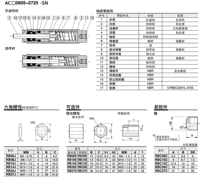 AC0604-SN,AC0806-SN,AC1007-SN,AC1210-SN,AC1412-SN,AC2015-SN,AC2725-SN,AC0604-S,AC0806-S,AC1007-S,AC1210-S,AC1412-S,AC2015-S,AC2725-S,AC1412-SM,AC1412-SC,ASE0806,ASE1007,ASE1210,ASE1412緩沖器