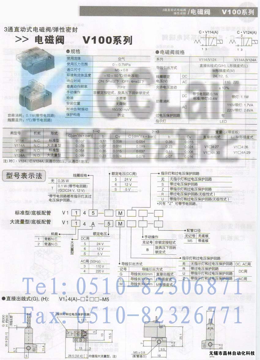 V114-5M,V114-5L,V114-5G,V100電磁閥