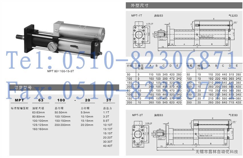 MPT100-50-20-10T,MPT100-50-20-13T,MPT100-50-20-15T,MPT100-50-20-20T,氣液增壓缸