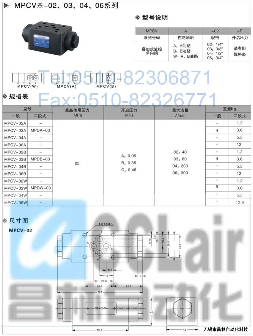 MPCV-04B,MPCV-06B,MPCV-02W,MPCV-03W,MPCV-04W,MPCV-06W,疊加式液控單向閥,疊加式液控單向閥價格,疊加式液控單向閥生產廠家,昌林疊加式液控單向閥,無錫疊加式液控單向閥