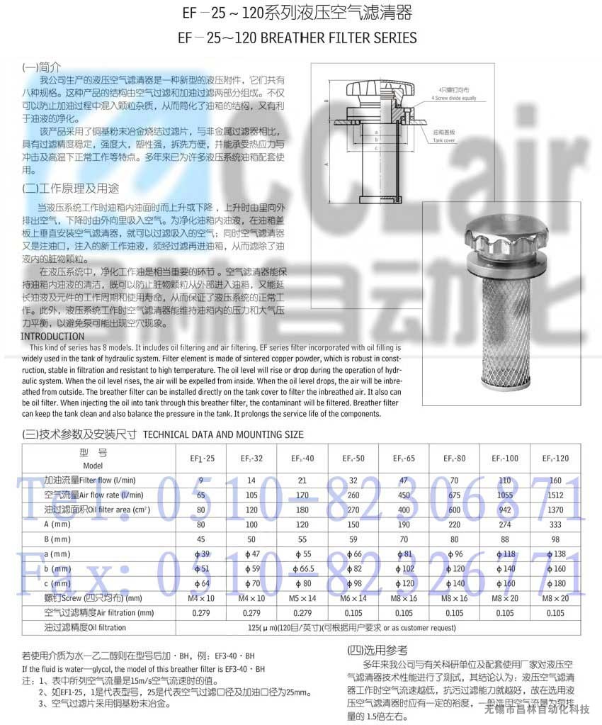 EF1-25,EF2-32,EF3-40,EF4-50,EF5-65,EF6-80,EF7-100,EF8-120,液壓空氣濾清器