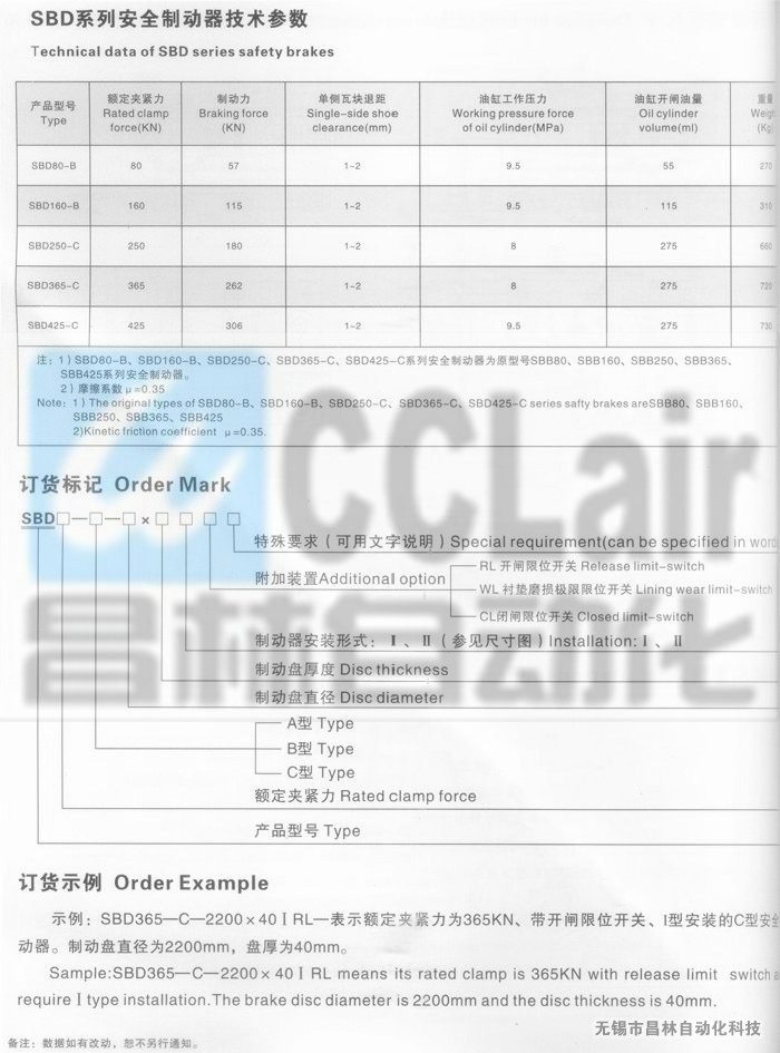 SBD250-C,SBD365-C,SBD425-C,液壓安全制動(dòng)器