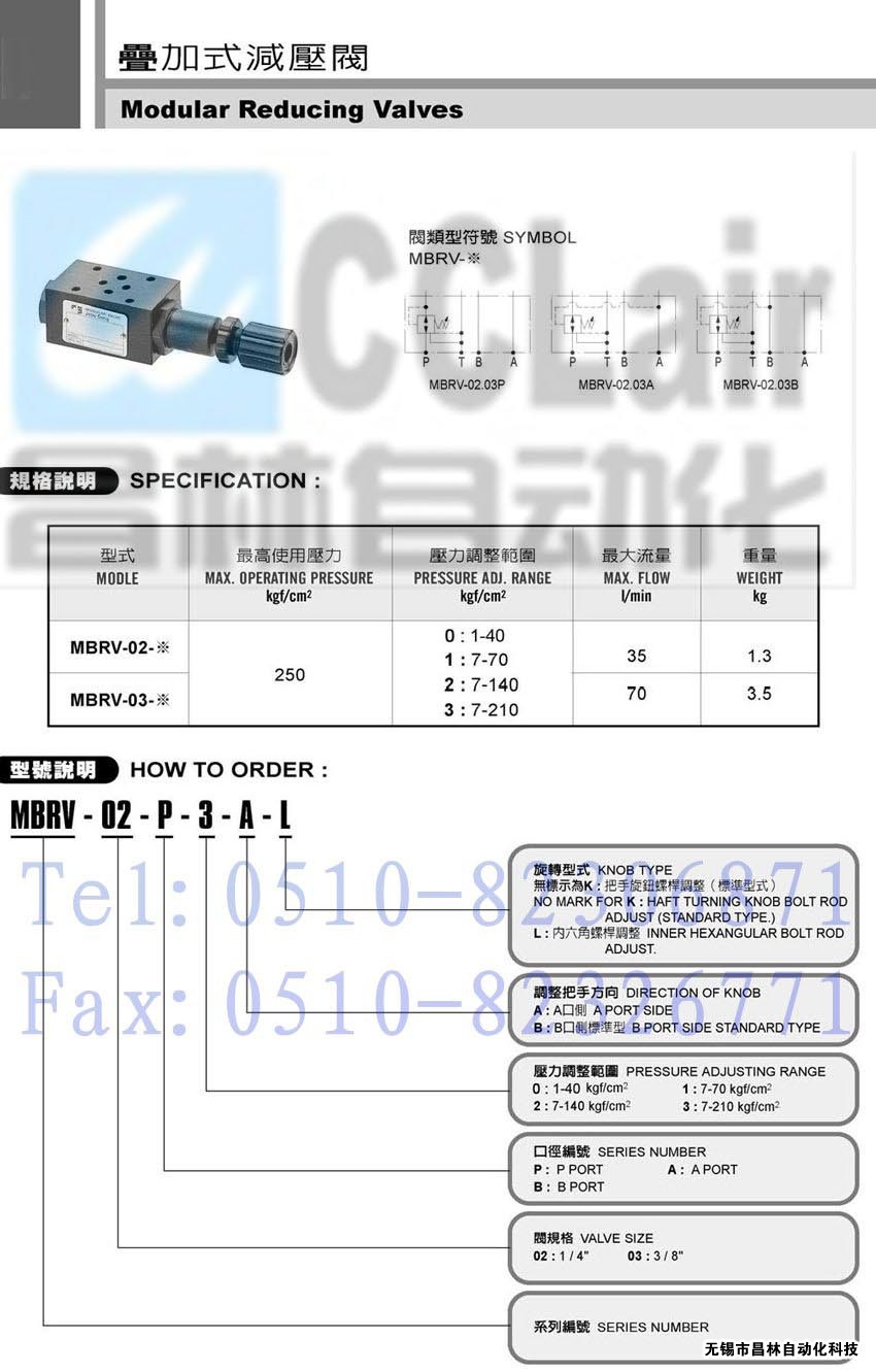 | MBRV-02-P-3-A-L, | 疊加式減壓閥 | |