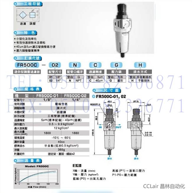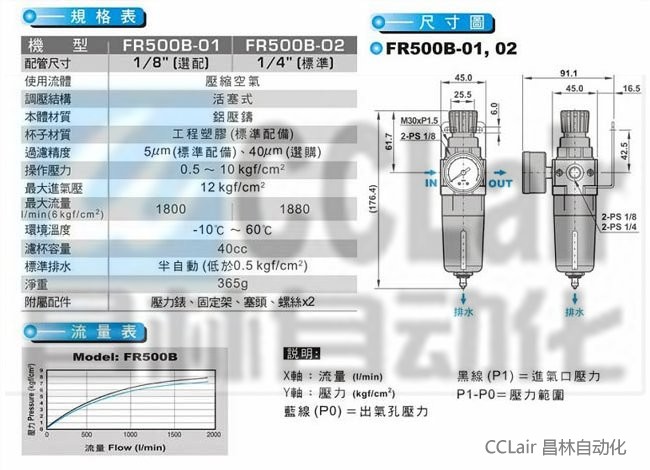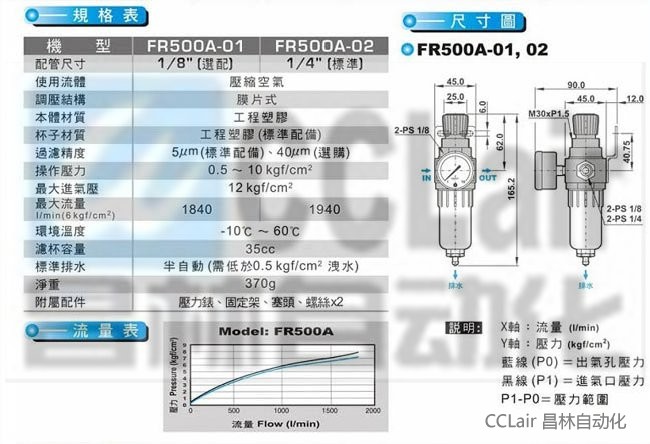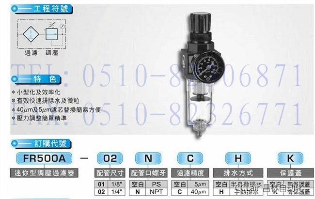 FR500A-01,FR500A-02,FR500B-01,FR500B-02, FR500C-01,FR500C-02,調壓過濾器