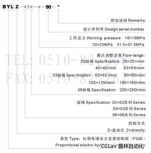 BYLZ-02,BYLZ-03,BYLZ-06,比例電液壓力流量控制閥,生產(chǎn)廠家,價格 本閥是用兩路電信號分別控制液壓系統(tǒng)的壓力和流量的比例閥;本閥以很小的壓差追蹤負(fù)載壓力,控制泵壓力,是一種節(jié)能型閥。 型號說明: