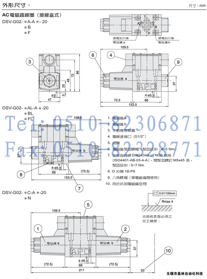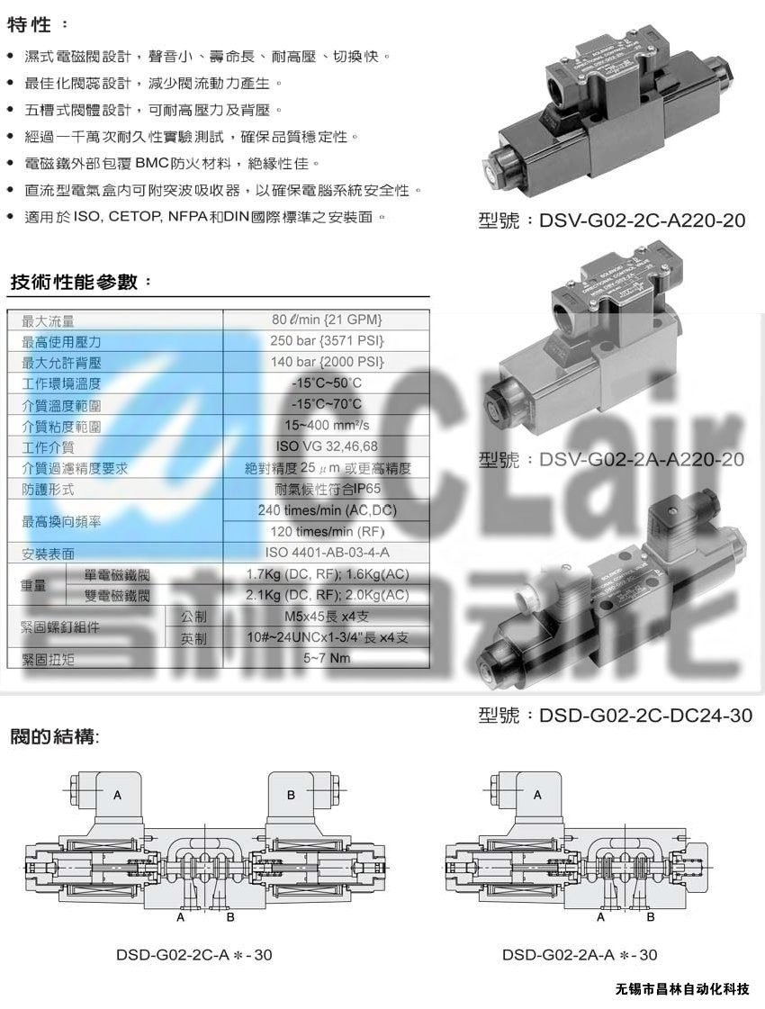DSD-GO2-3C,DSD-GO2-4C,DSD-GO2-5C,DSD-GO2-6C,DSD-GO2-7C,DSD-GO2-8C,濕式電磁鐵操作換向閥